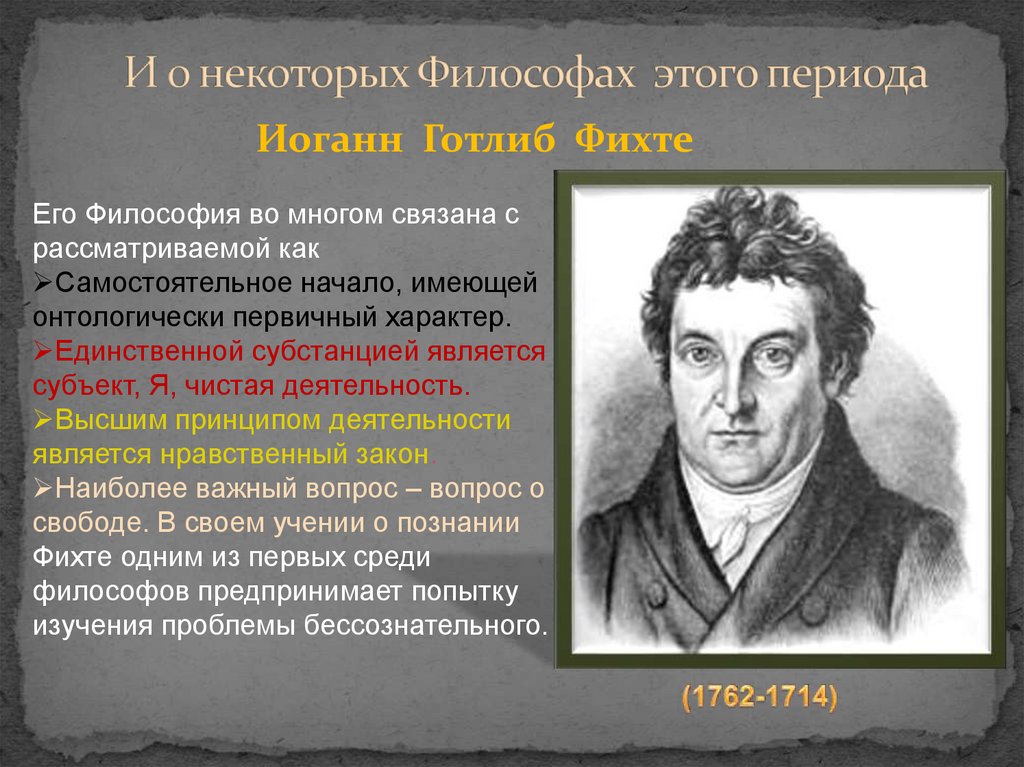 Иоганн Готлиб ФихтеЕго Философия во многом связана с