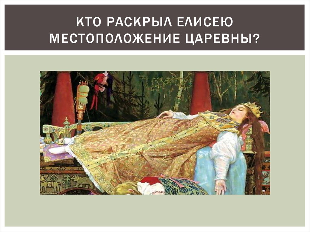КТО РАСКРЫЛ ЕЛИСЕЮМЕСТОПОЛОЖЕНИЕ ЦАРЕВНЫ?