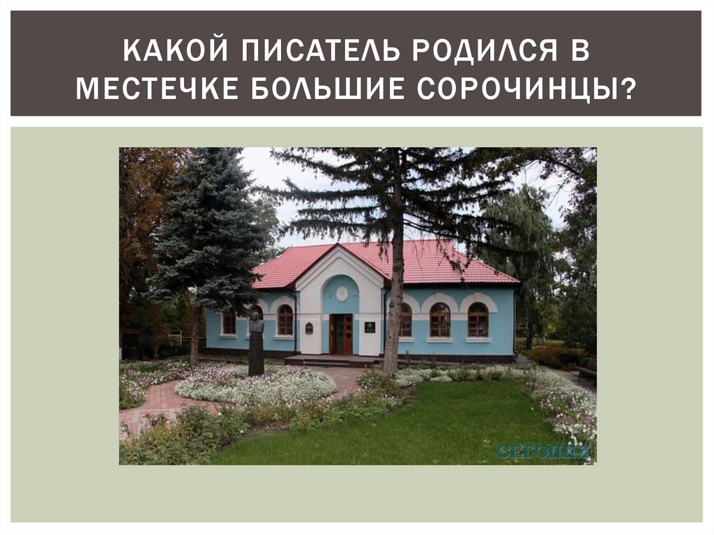 КАКОЙ ПИСАТЕЛЬ РОДИЛСЯ ВМЕСТЕЧКЕ БОЛЬШИЕ СОРОЧИНЦЫ?