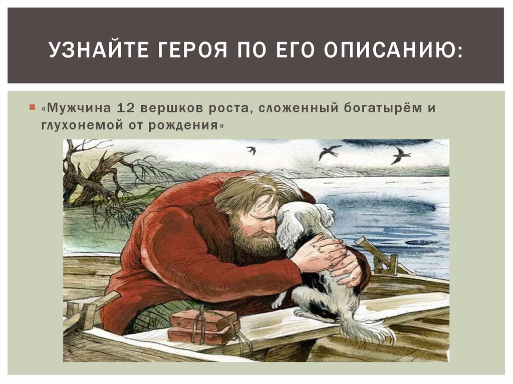 УЗНАЙТЕ ГЕРОЯ ПО ЕГО ОПИСАНИЮ:«Мужчина 12 вершков роста, сложенный богатырём и