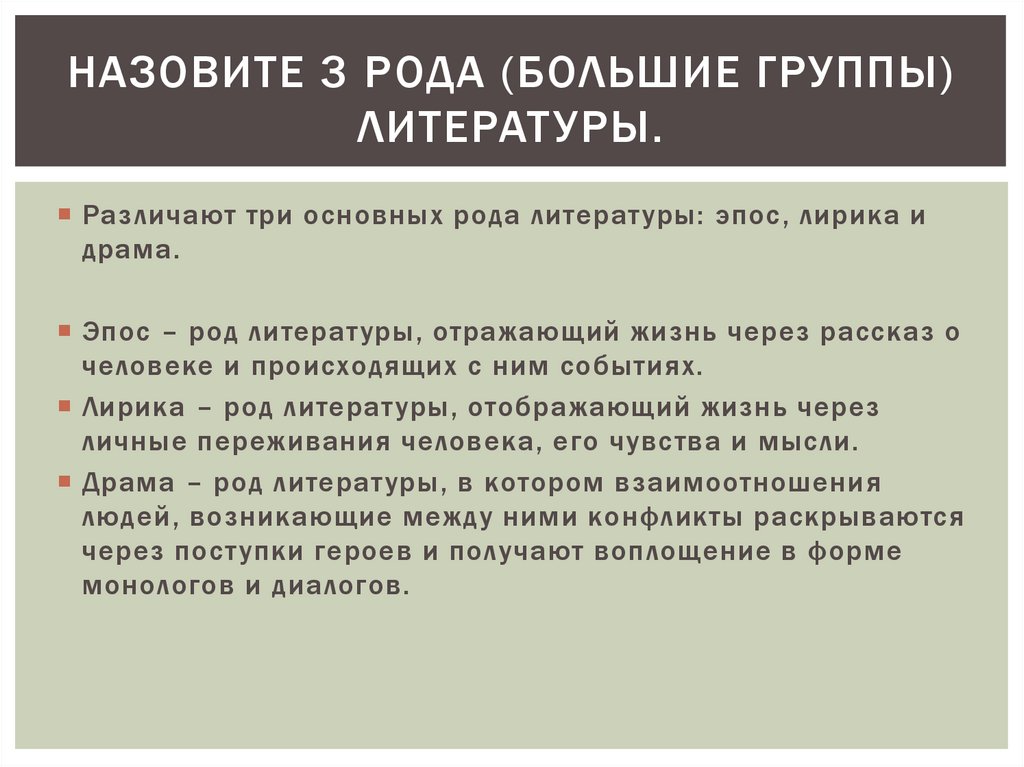 НАЗОВИТЕ 3 РОДА (БОЛЬШИЕ ГРУППЫ)ЛИТЕРАТ УРЫ.