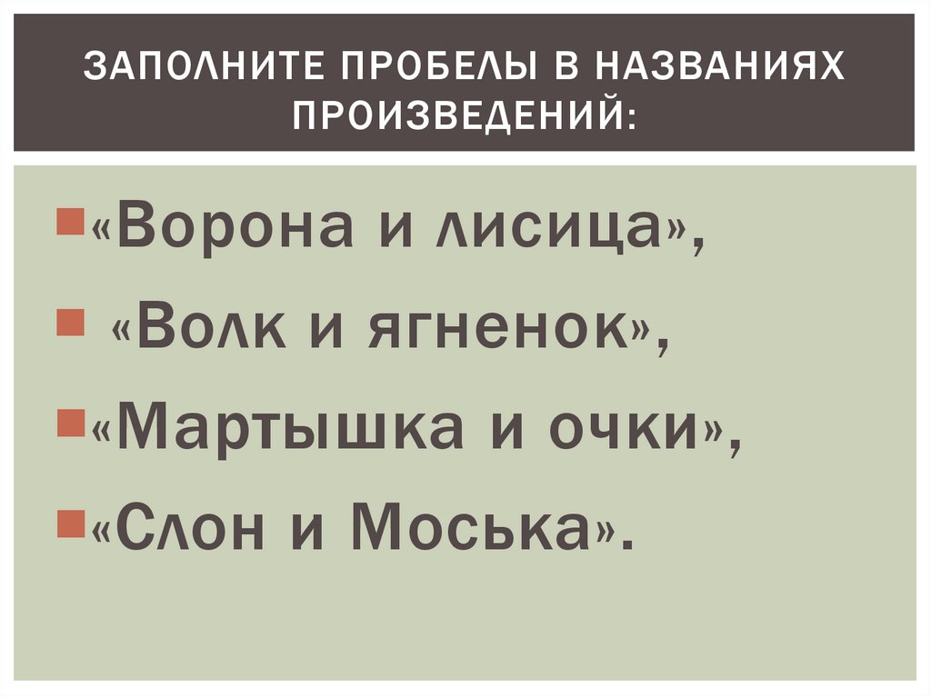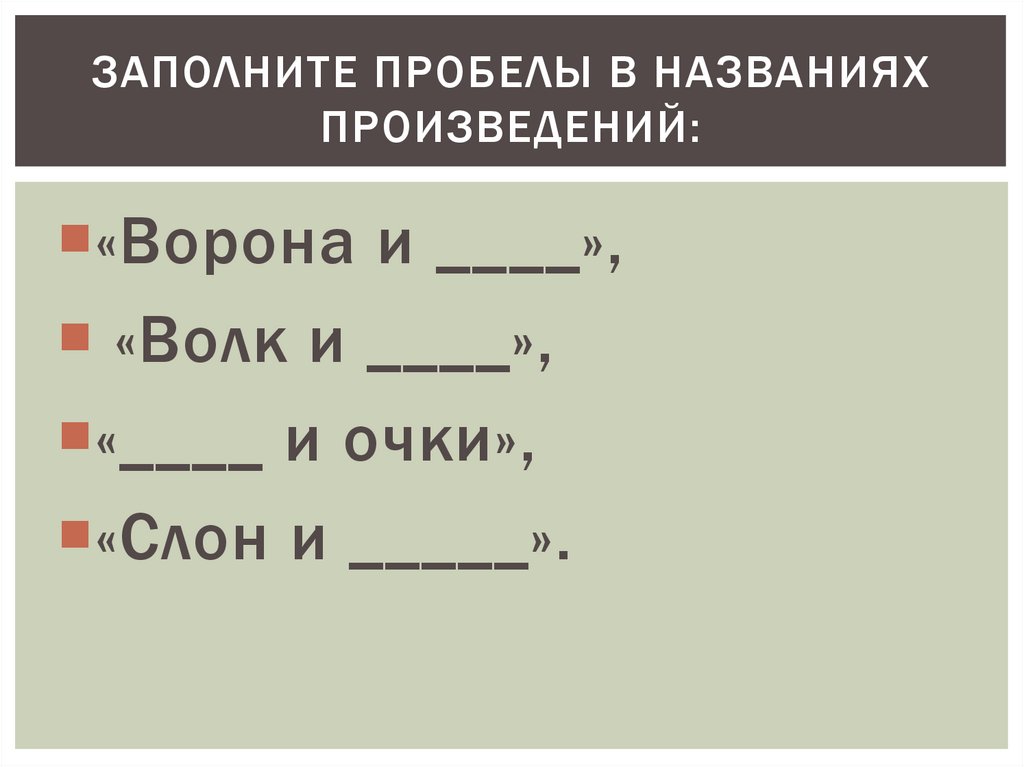 ЗАПОЛНИТЕ ПРОБЕЛЫ В НАЗВАНИЯХПРОИЗВЕДЕНИЙ: