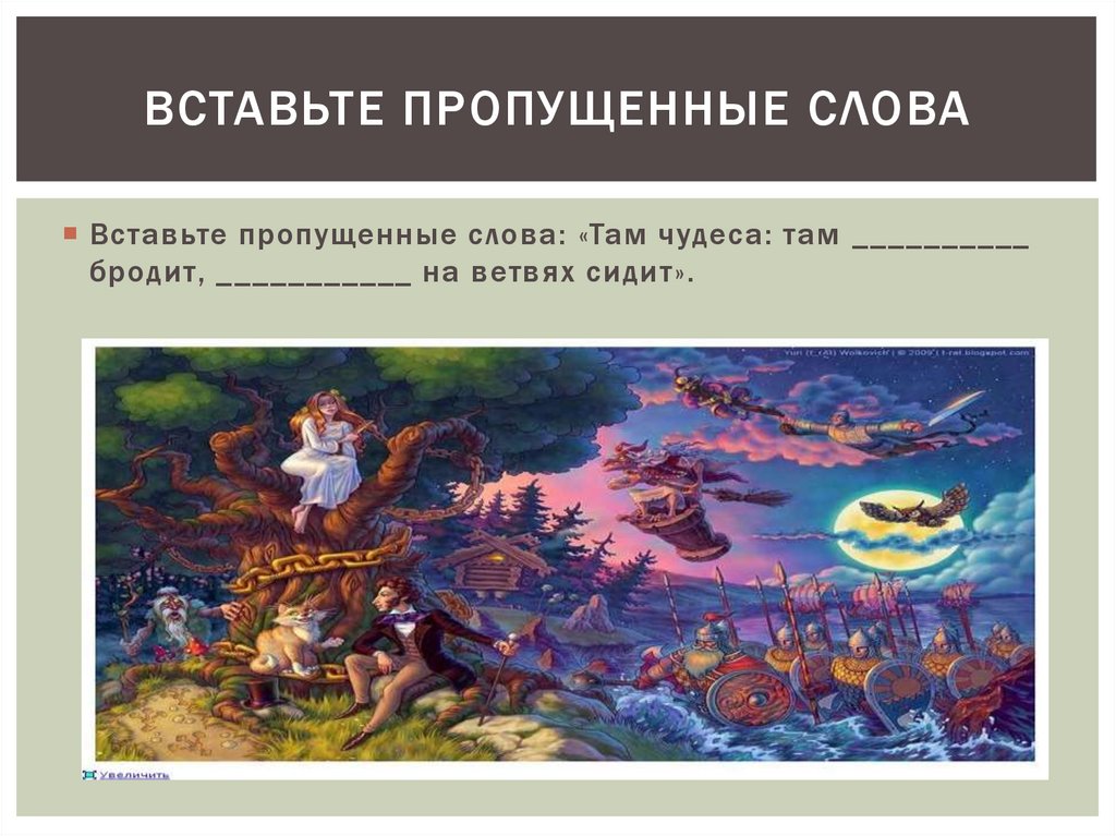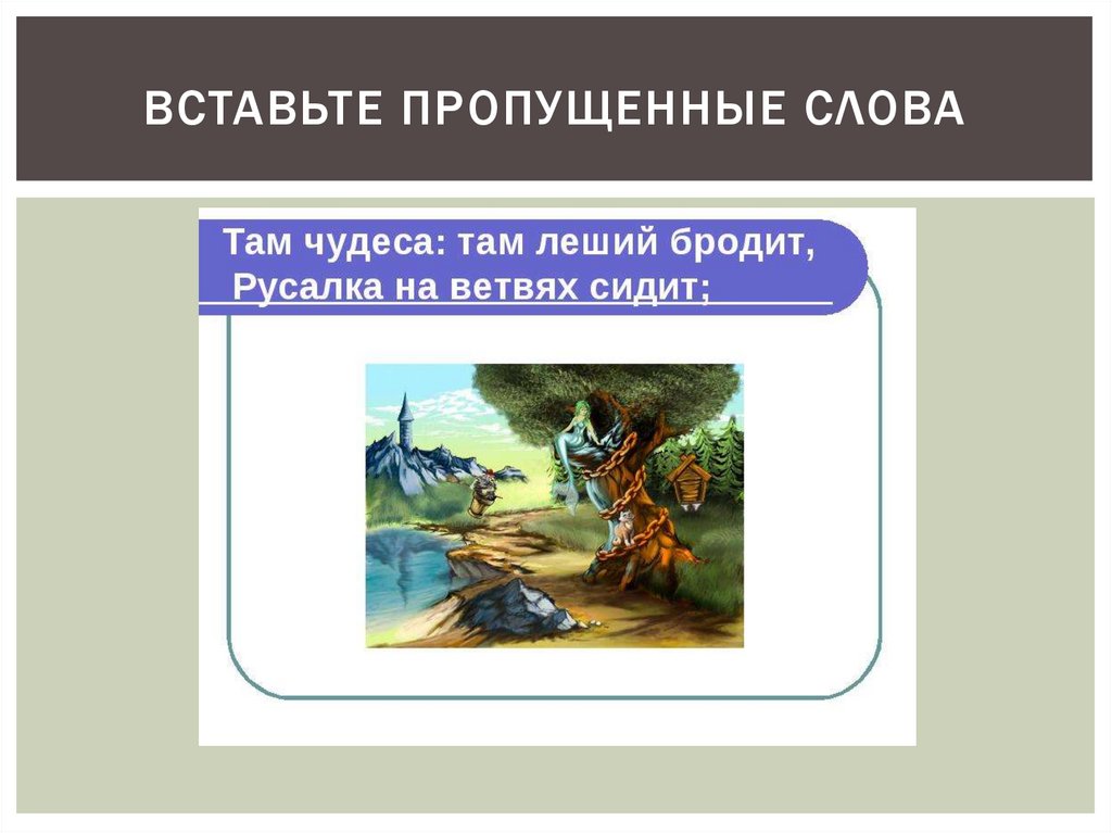 ВСТАВЬТЕ ПРОПУЩЕННЫЕ СЛОВАВставьте пропущенные слова: «Там чудеса: там __________