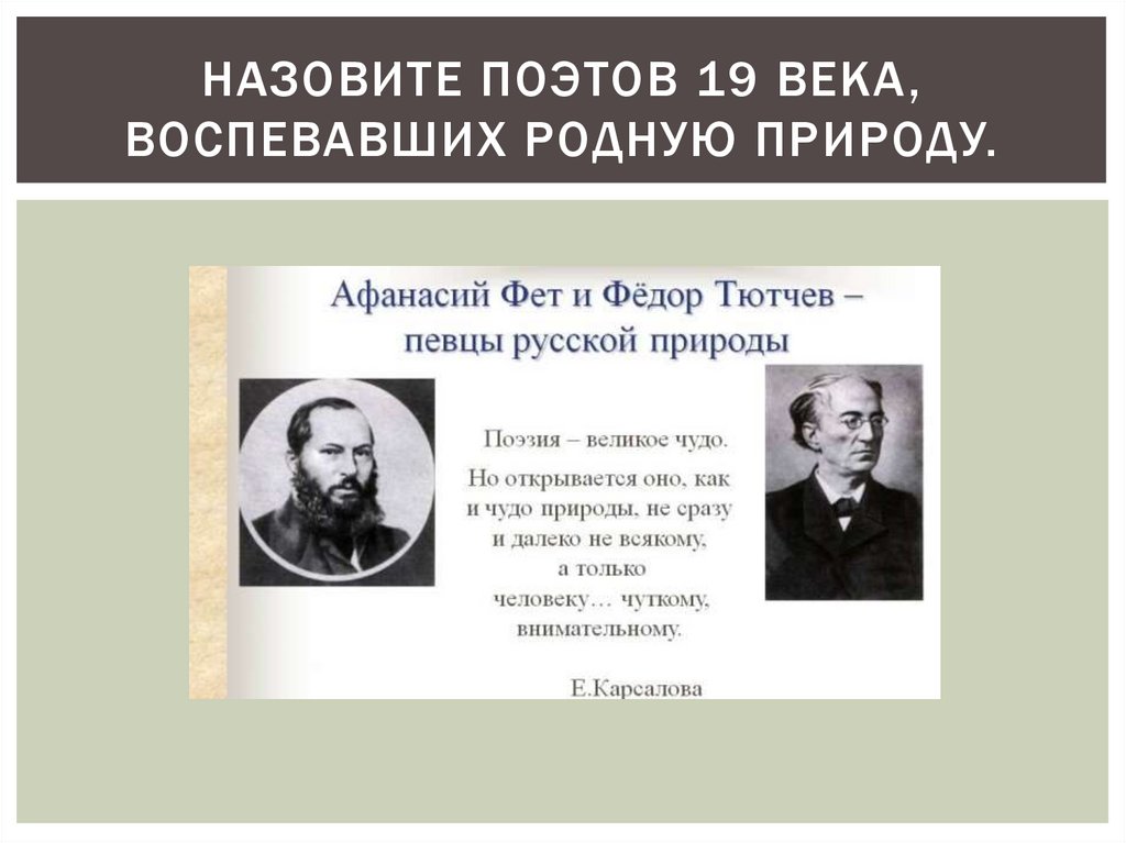 НАЗОВИТЕ ПОЭТОВ 19 ВЕКА,ВОСПЕВАВШИХ РОДНУЮ ПРИРОДУ.