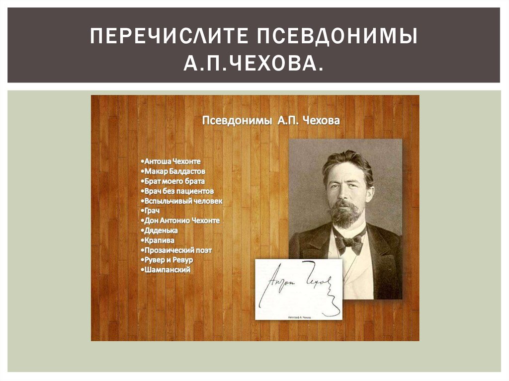 ПЕРЕЧИСЛИТЕ ПСЕВДОНИМЫА.П.ЧЕХОВА.