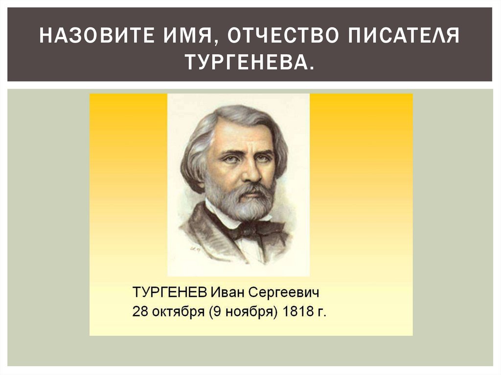 НАЗОВИТЕ ИМЯ, ОТЧЕСТВО ПИСАТЕЛЯТ УРГЕНЕВА.