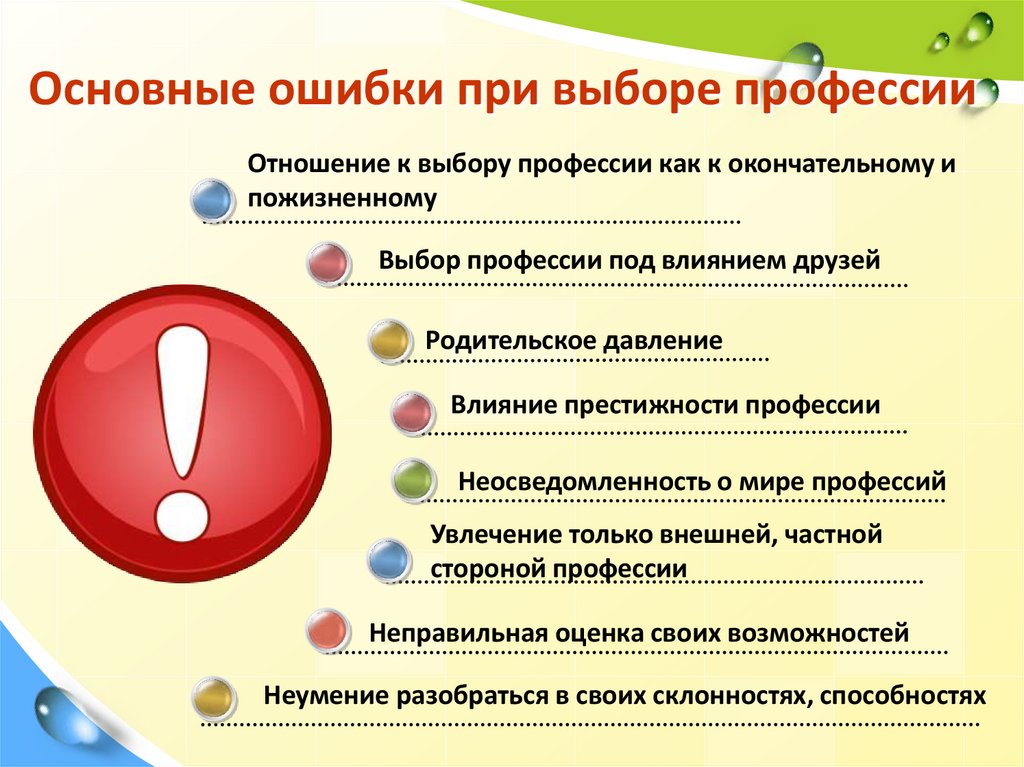Основные ошибки при выборе профессииОтношение к выбору профессии как к окончательному и