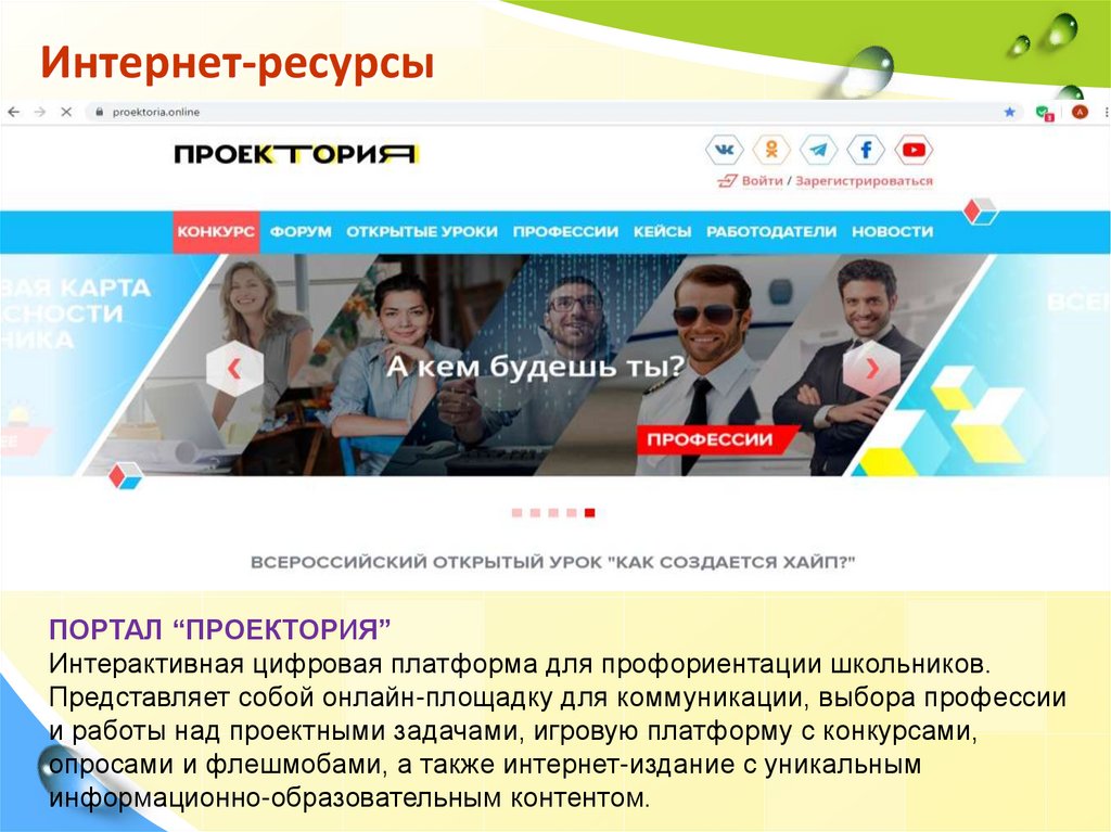 Интернет-ресурсыПОРТАЛ “ПРОЕКТОРИЯ”