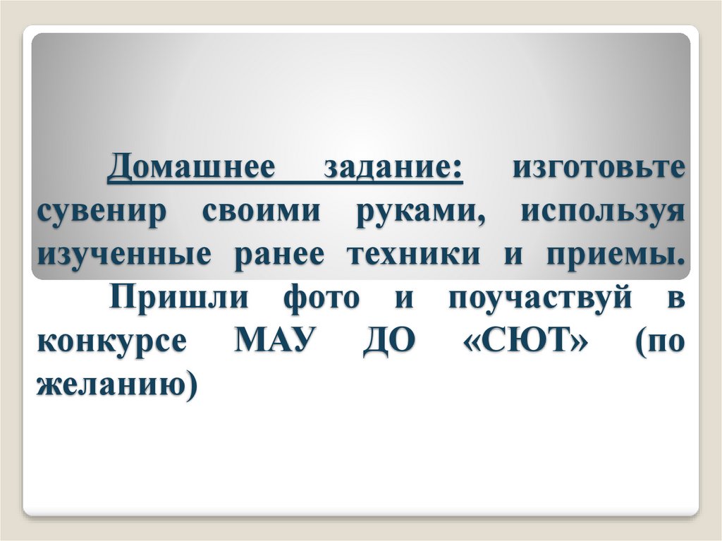 Домашнее задание: изготовьтесувенир своими руками, используя