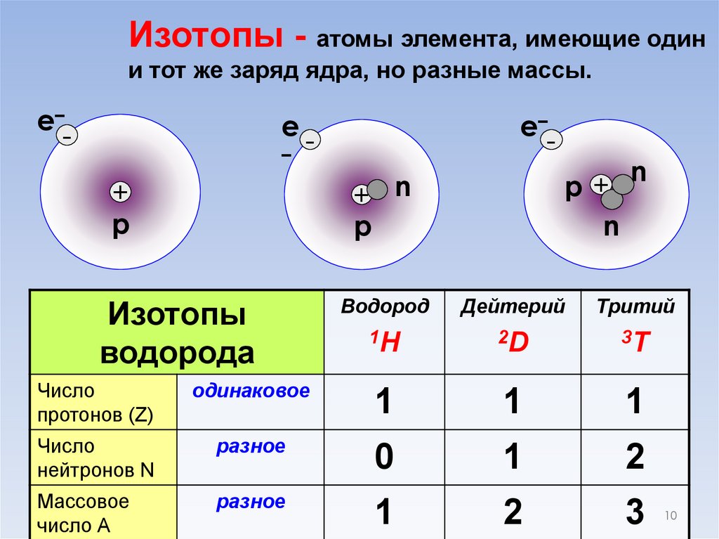 Изотопы - атомы элемента, имеющие одини тот же заряд ядра, но разные массы.