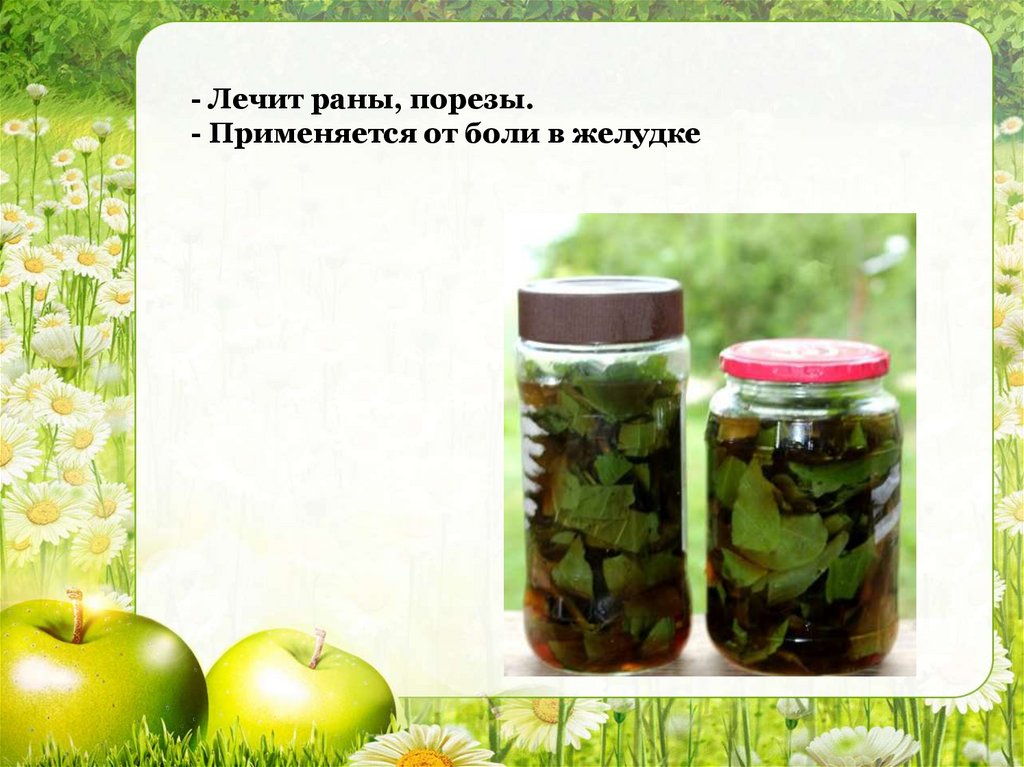 - Лечит раны, порезы.- Применяется от боли в желудке