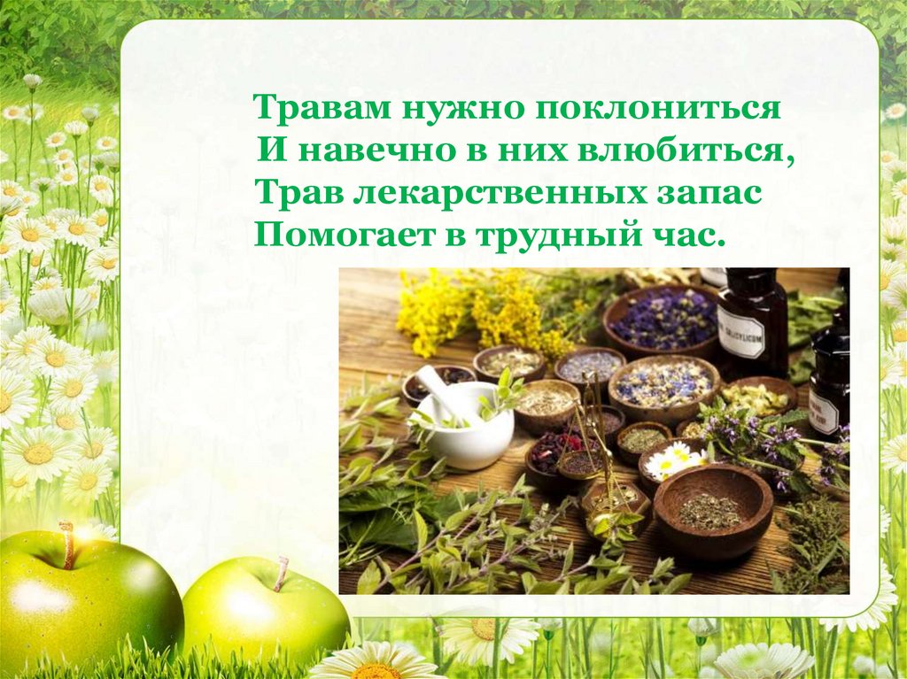 Травам нужно поклонитьсяИ навечно в них влюбиться,