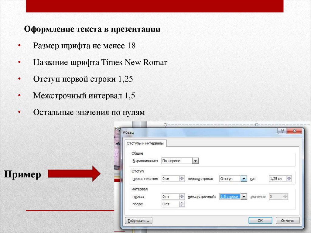 Оформление текста в презентацииРазмер шрифта не менее 18