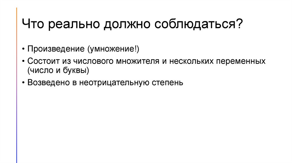 Что реально должно соблюдаться?• Произведение (умножение!)