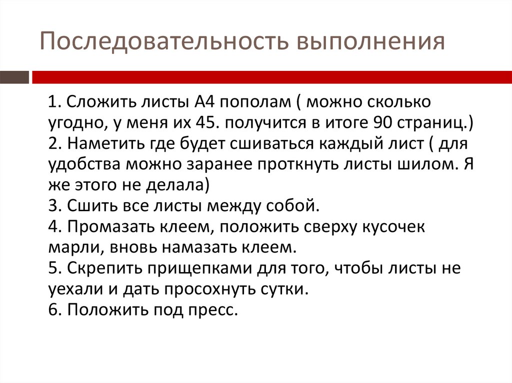 Последовательность выполнения1. Сложить листы А4 пополам ( можно сколько