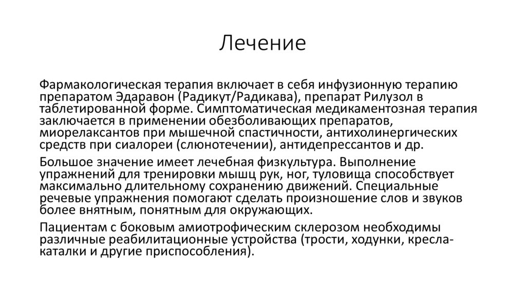 препаратом Эдаравон (Радикут/Радикава), препарат Рилузол в