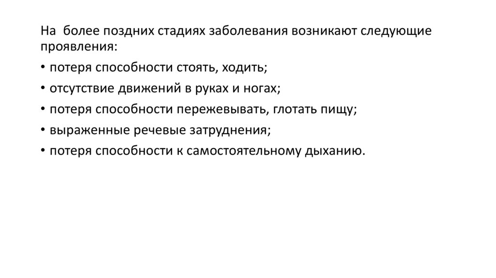 На более поздних стадиях заболевания возникают следующиепроявления: