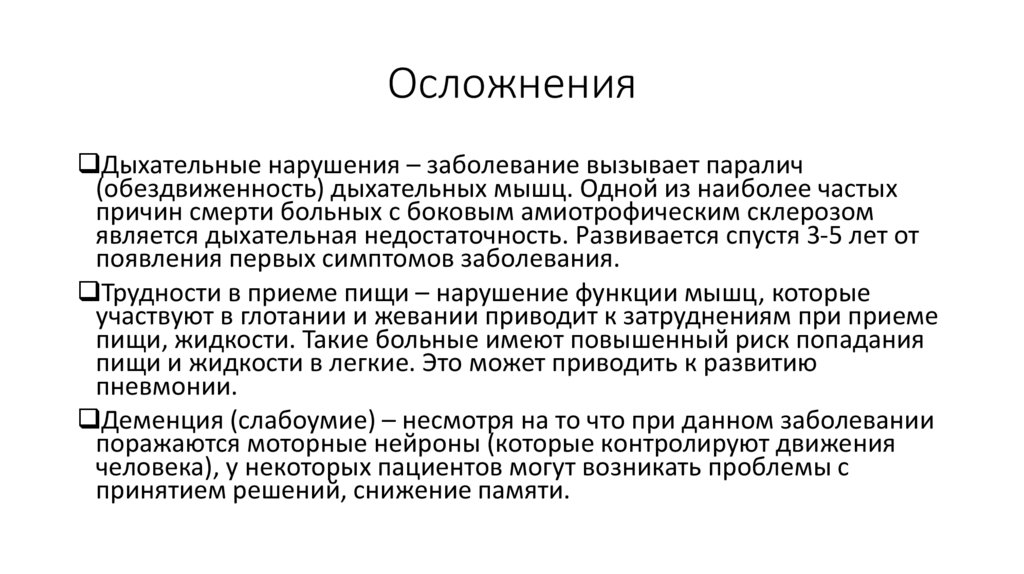 ОсложненияДыхательные нарушения – заболевание вызывает паралич