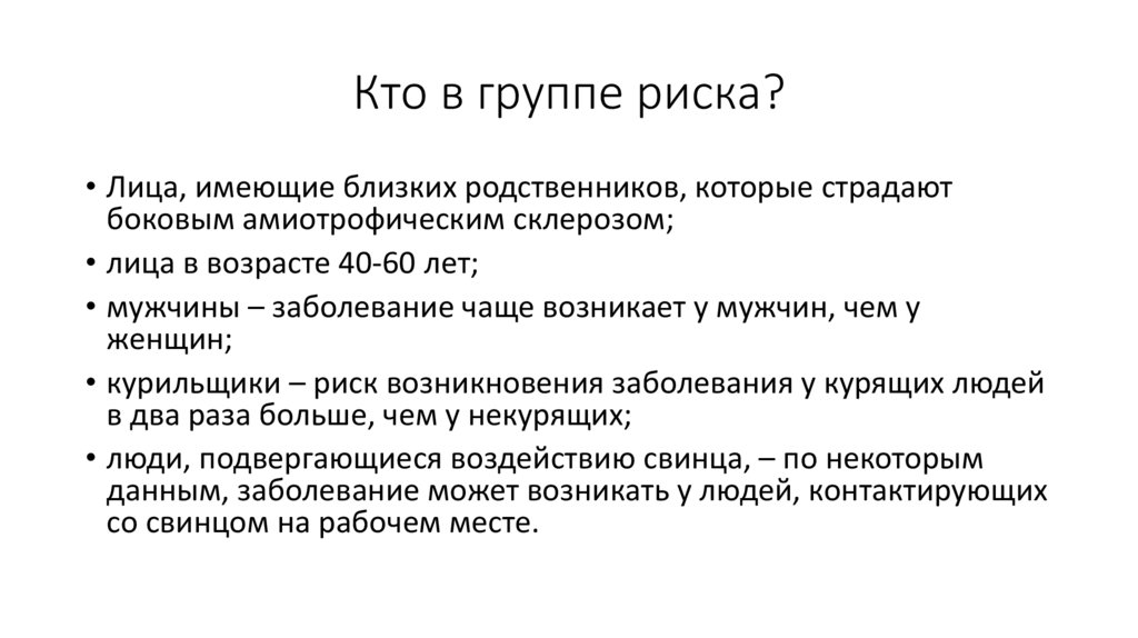Кто в группе риска?• Лица, имеющие близких родственников, которые страдают