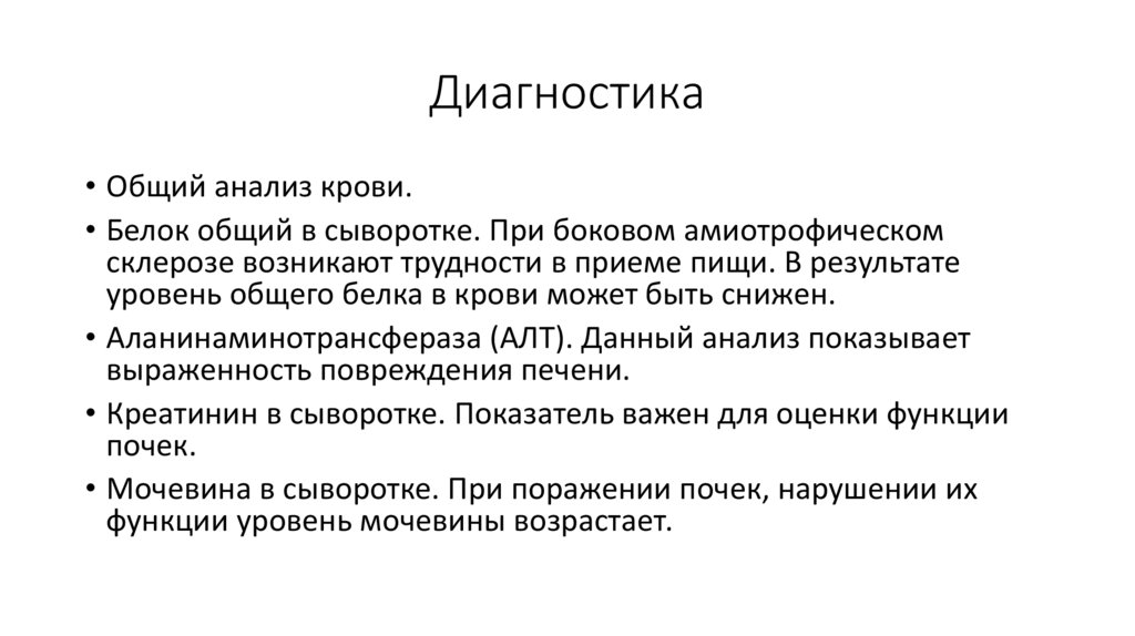 • Белок общий в сыворотке. При боковом амиотрофическом