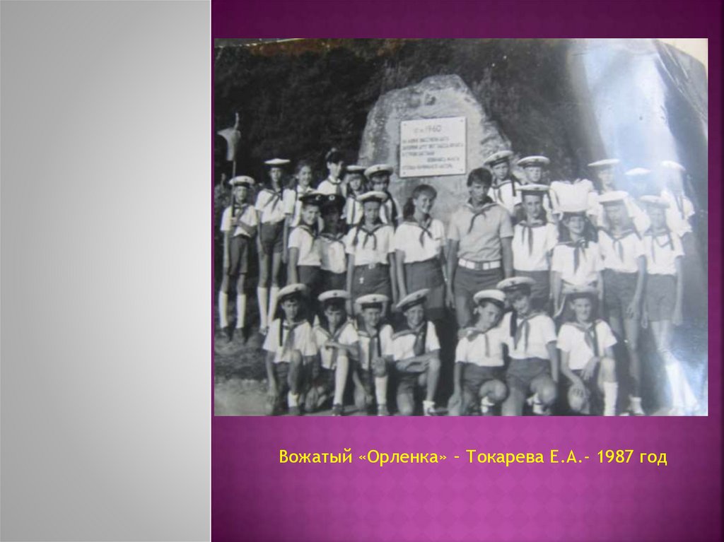Вожатый «Орленка» – Токарева Е.А.- 1987 год9.