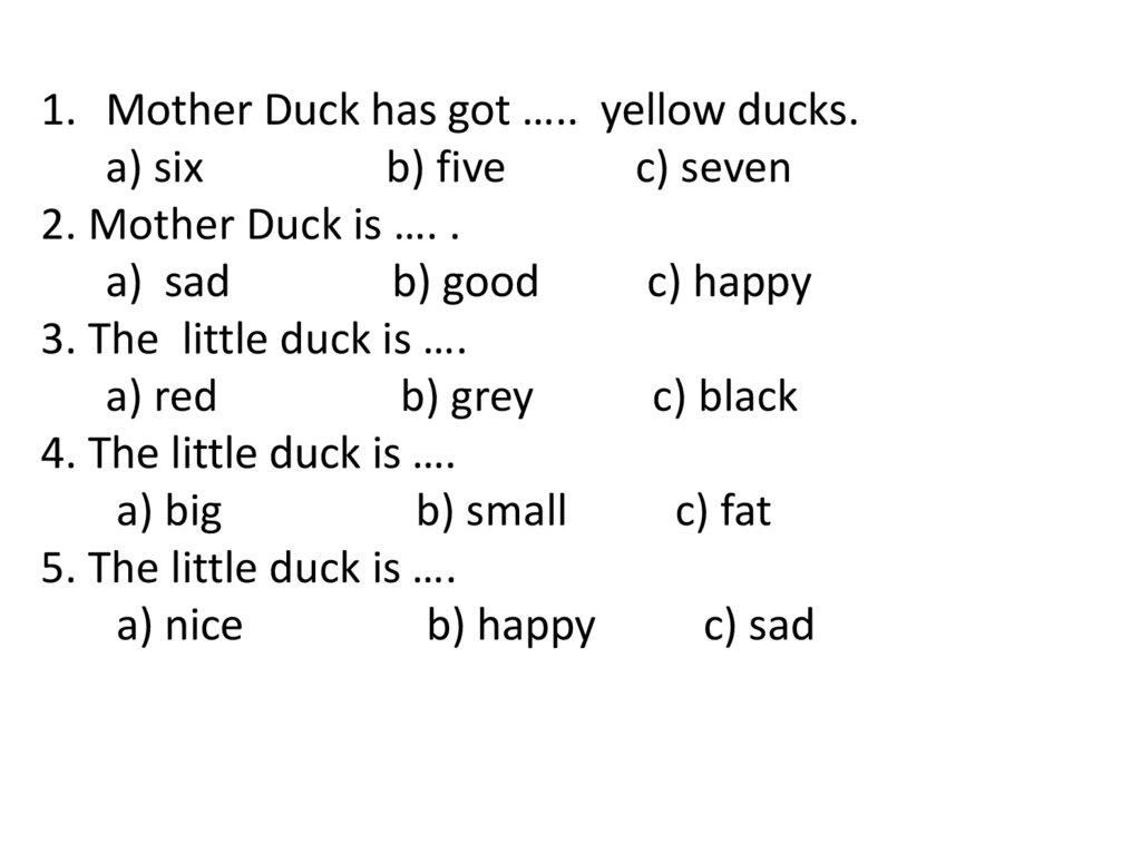 1. Mother Duck has got ….. yellow ducks.