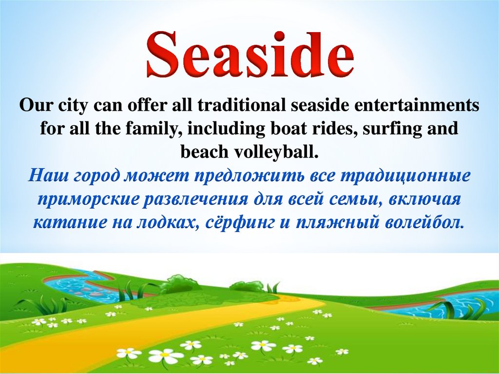 Our city can offer all traditional seaside entertainmentsfor all the family, including boat rides, surfing and