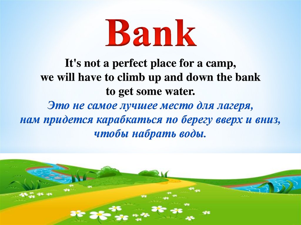 нам придется карабкаться по берегу вверх и вниз,