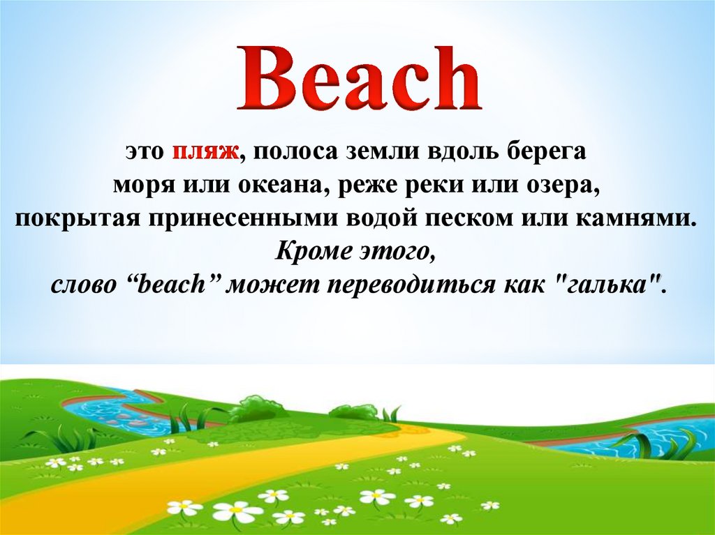 слово “beach” может переводиться как "галька".
