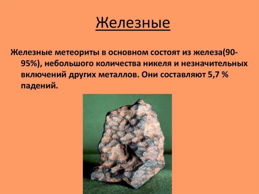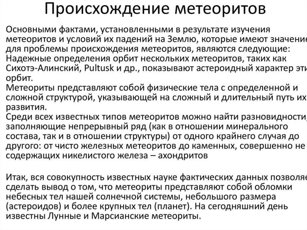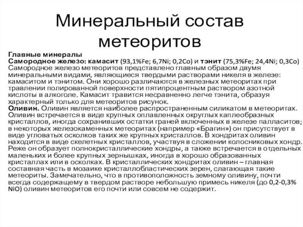 Метеориты (основные типы, распространенность, особенности состава и происхождения)