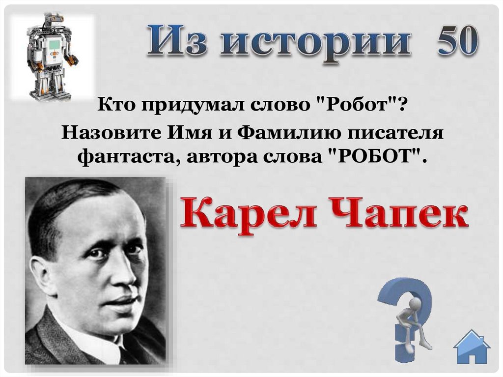 Кто придумал слово "Робот"?Назовите Имя и Фамилию писателя