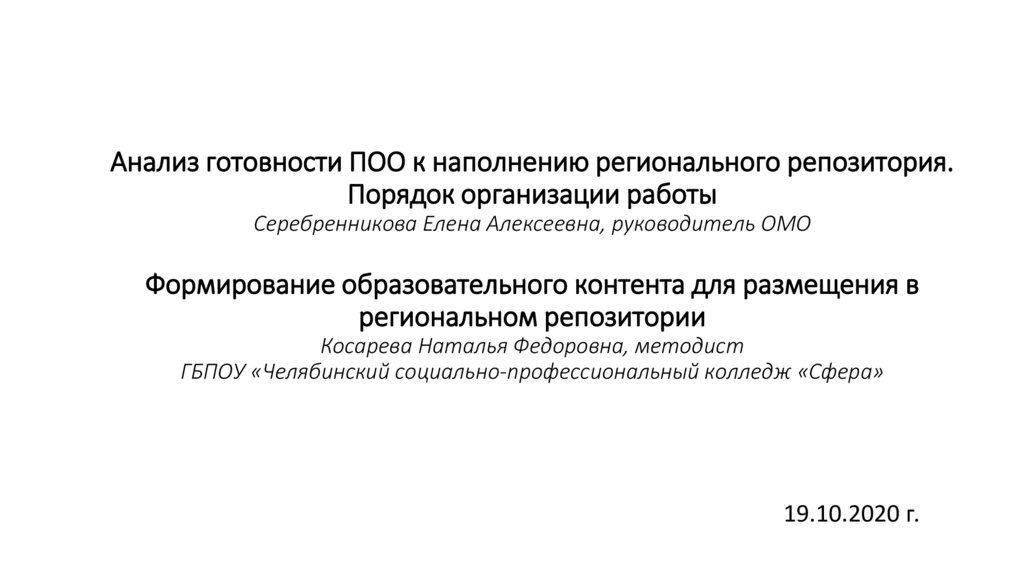 Анализ готовности ПОО к наполнению регионального репозитория.Порядок организации работы