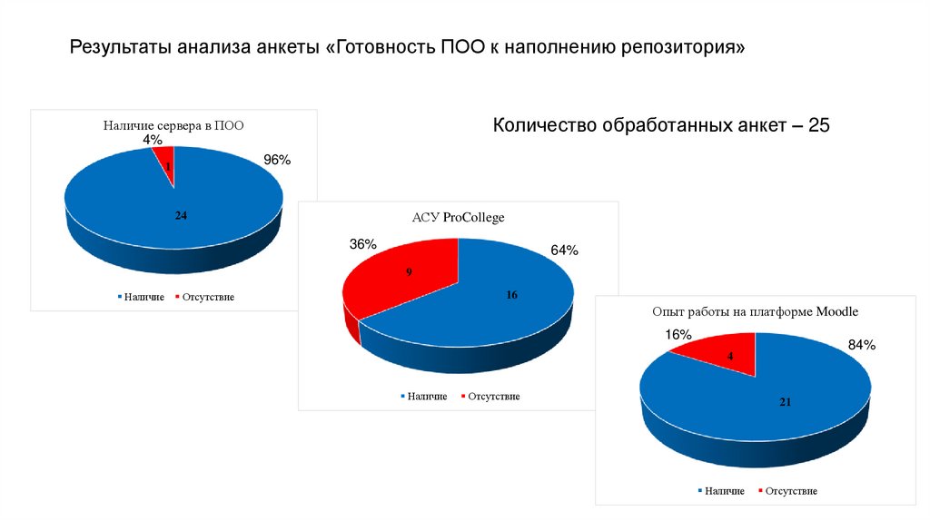 Результаты анализа анкеты «Готовность ПОО к наполнению репозитория»Количество обработанных анкет – 25