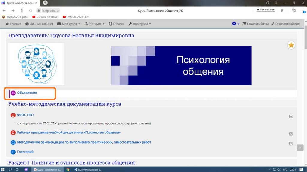 Формирование образовательного контента для размещения в