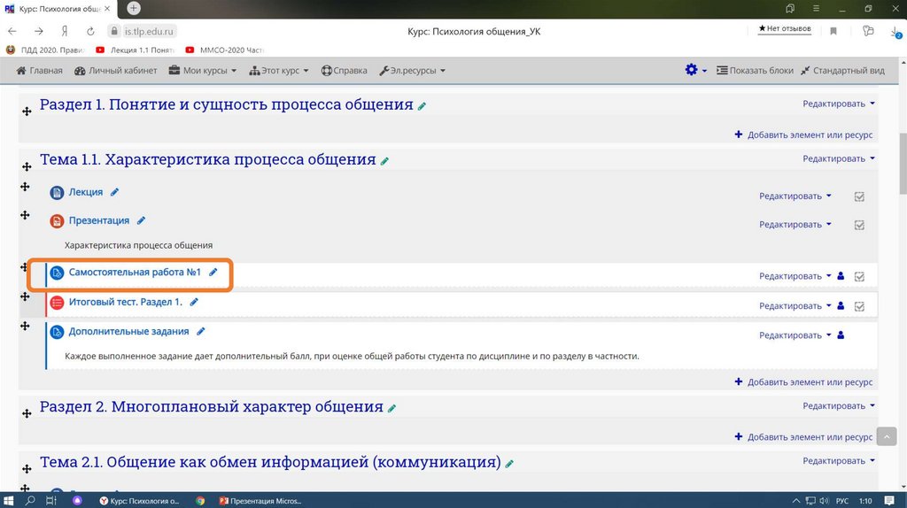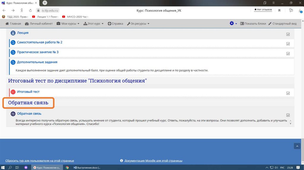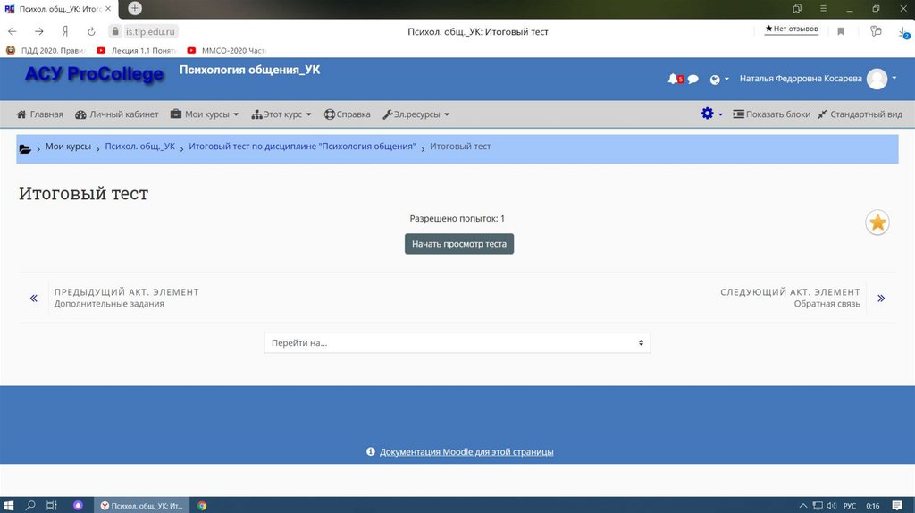 Опыт работы на платформе Moodle