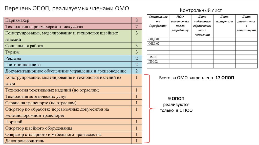 Всего за ОМО закреплено 17 ОПОП