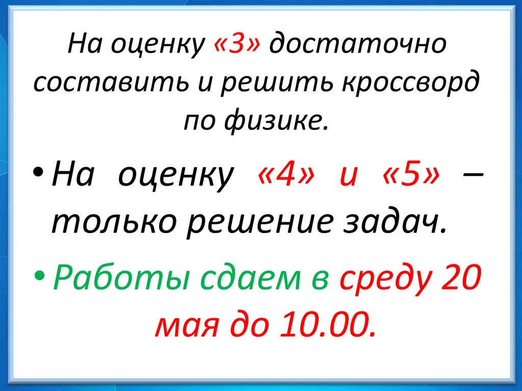 На оценку «3» достаточносоставить и решить кроссворд