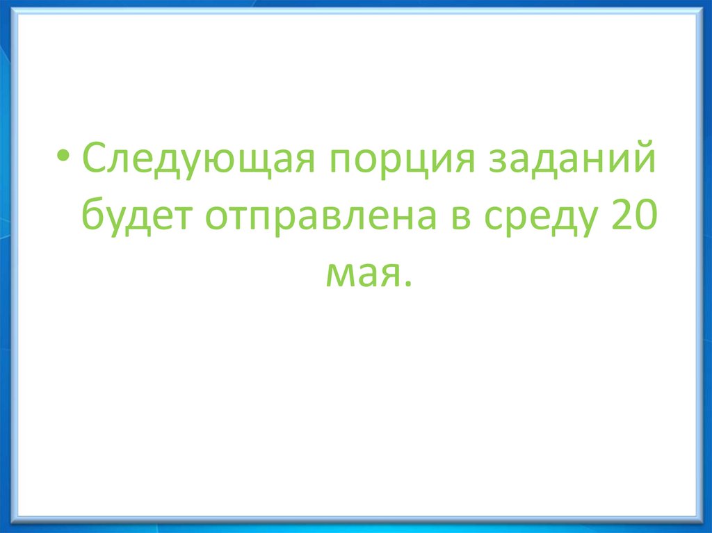 • Следующая порция заданийбудет отправлена в среду 20