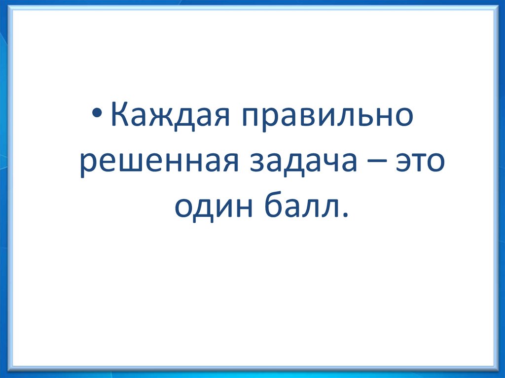 • Каждая правильнорешенная задача – это