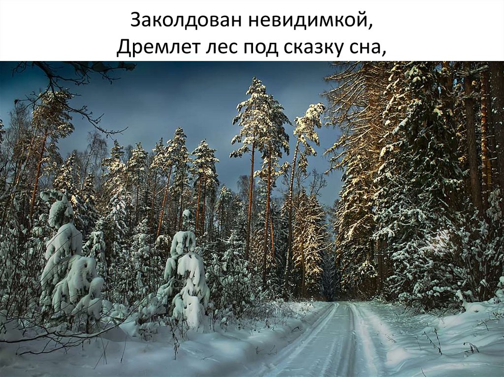 Заколдован невидимкой,Дремлет лес под сказку сна,