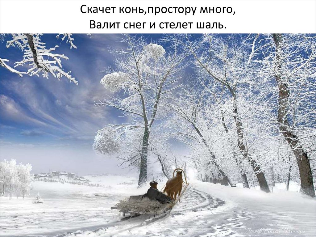 Скачет конь,простору много,Валит снег и стелет шаль.