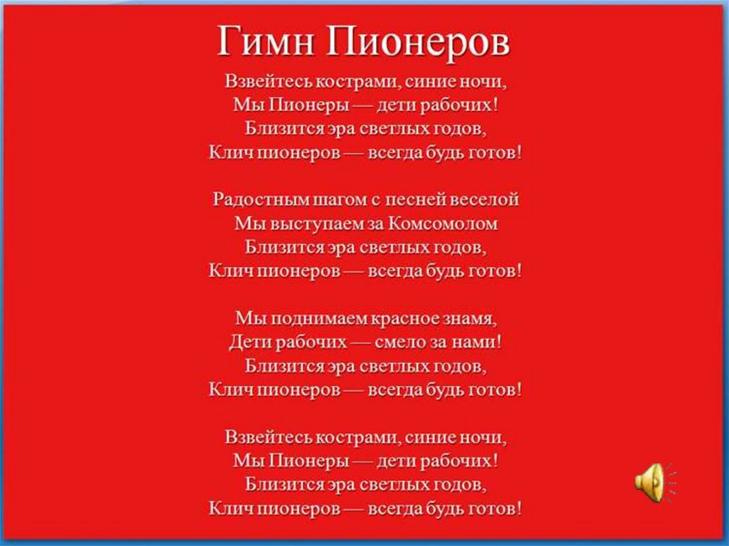С пионерею всею в строю.