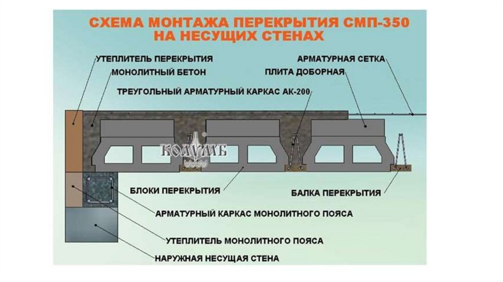 Схема монтажа перекрытия СПМ-350 на несущих стенах