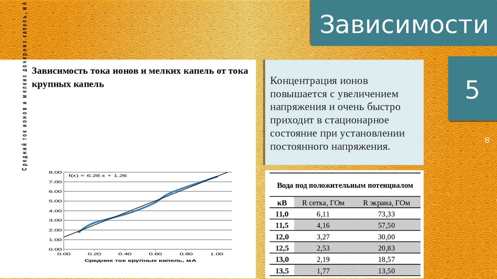 1. Сравнение токов ионов и заряженных капель, создаваемых истечением воды из конуса Тейлора.