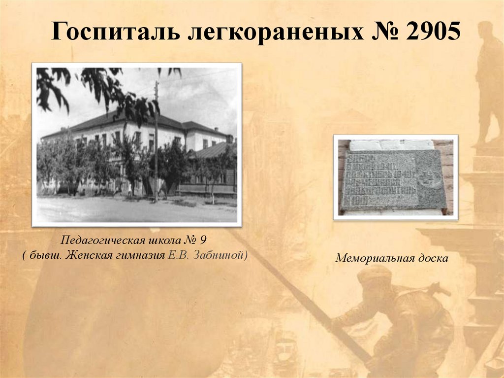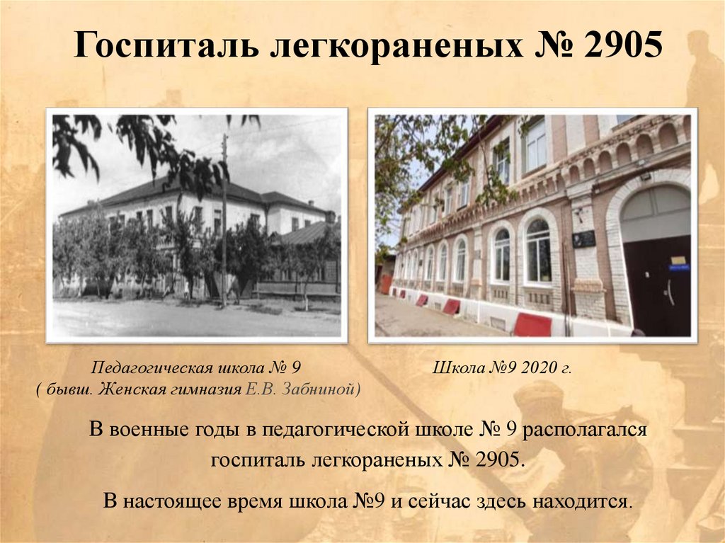 Госпиталь легкораненых № 2905Педагогическая школа № 9