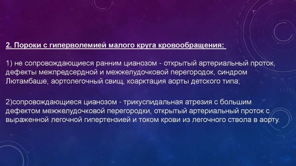 2. Пороки с гиперволемией малого круга кровообращения:1) не сопровождающиеся ранним цианозом - открытый артериальный проток,