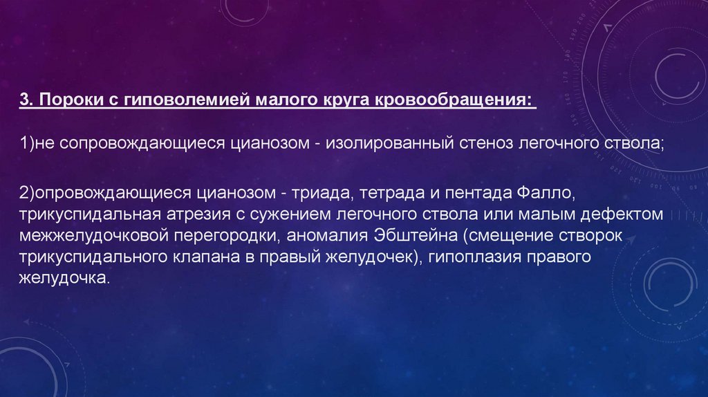 2)опровождающиеся цианозом - триада, тетрада и пентада Фалло,