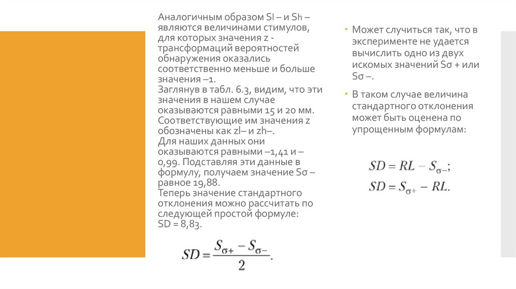 4. Оценки вариативности порога Принято оценивать величины стандартного отклонения. Поскольку стандартное нормальное распределение