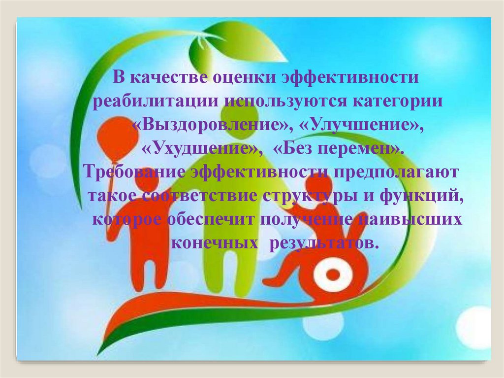 В качестве оценки эффективностиреабилитации используются категории