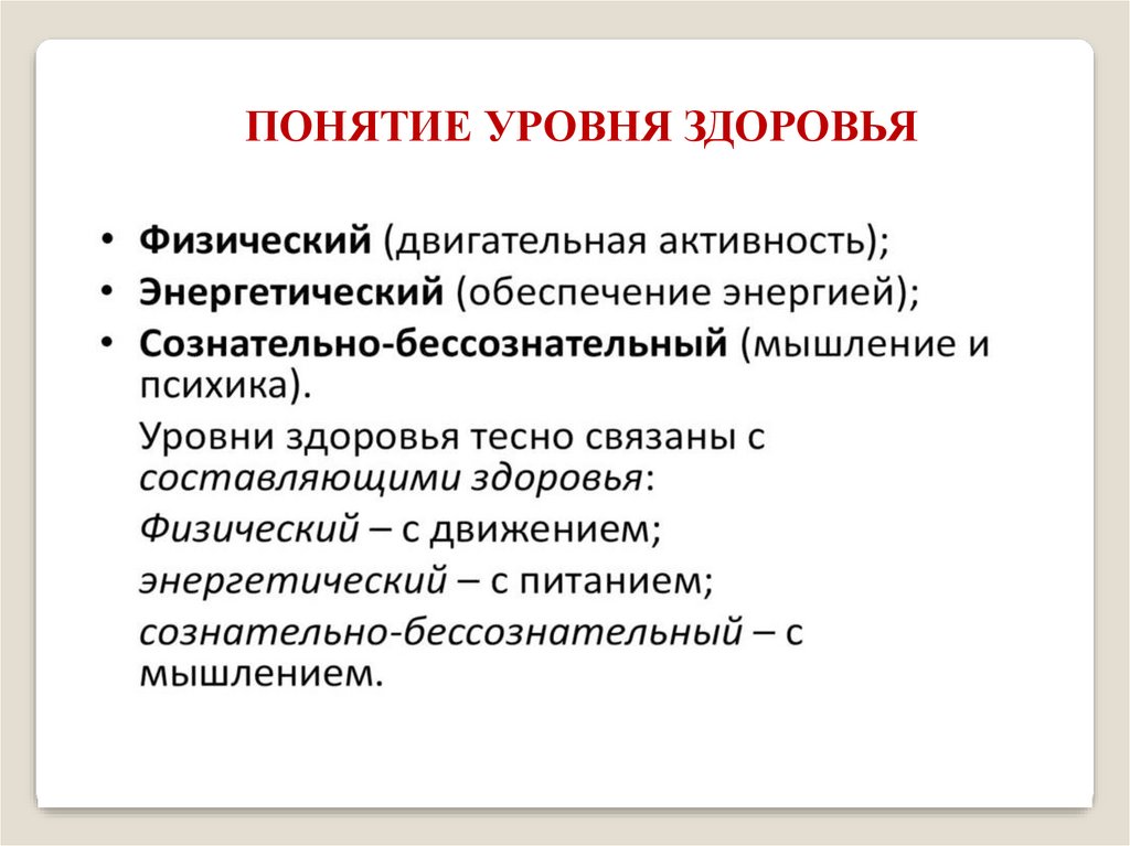 ПОНЯТИЕ УРОВНЯ ЗДОРОВЬЯ6.